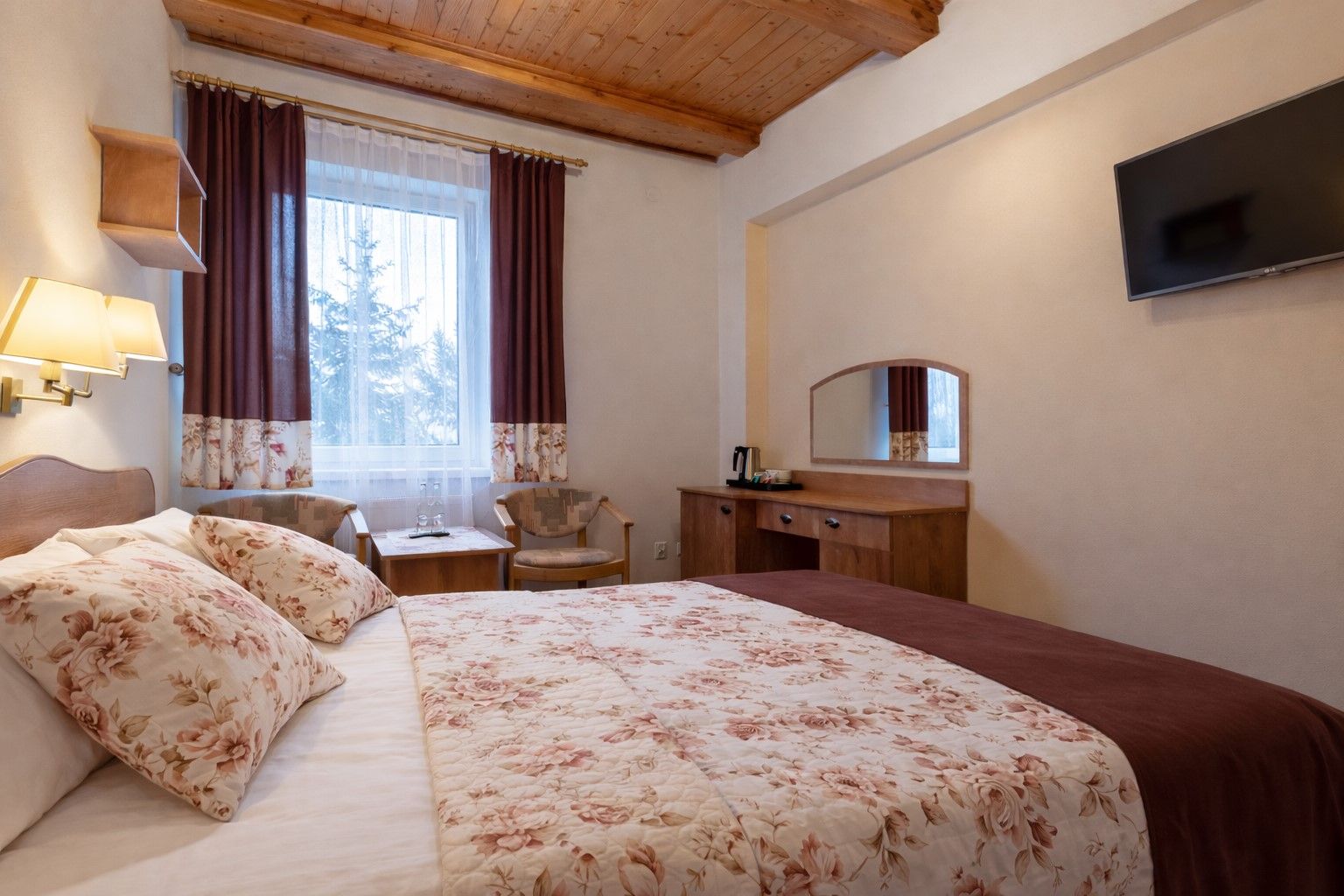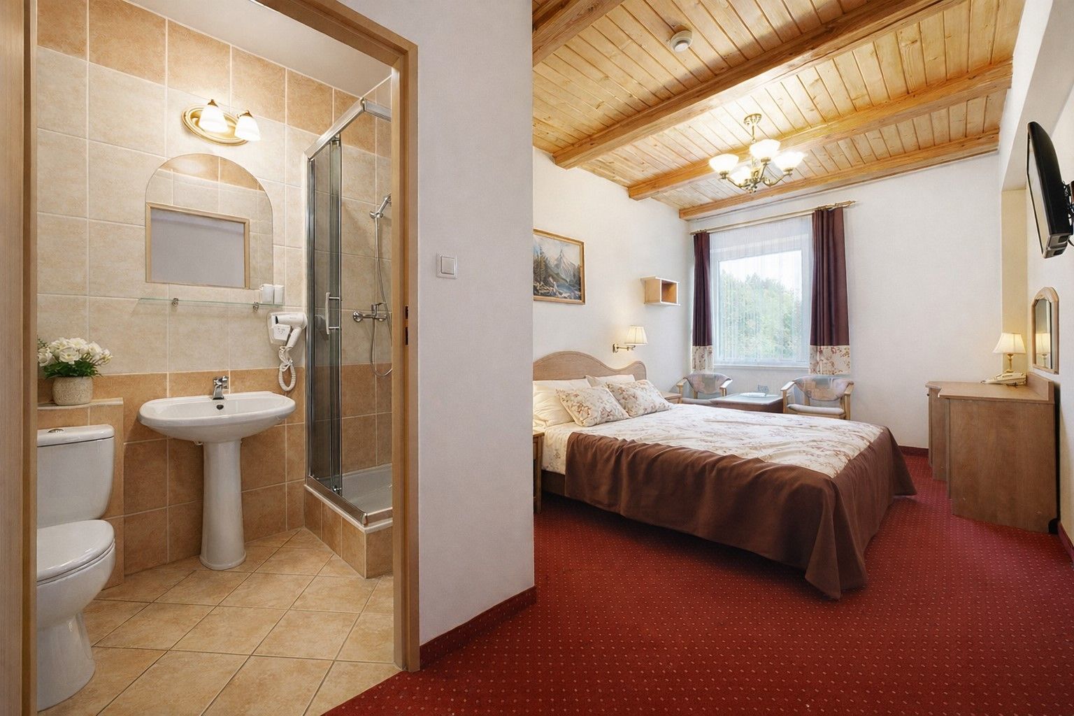 Pokoje są przestronne i wygodne. Zaaranżowane w nowoczesnym, acz nawiązującym do regionalnej klasyki stylu. Kolorystyka wnętrza jest ciepła i nastraja pozytywnie.