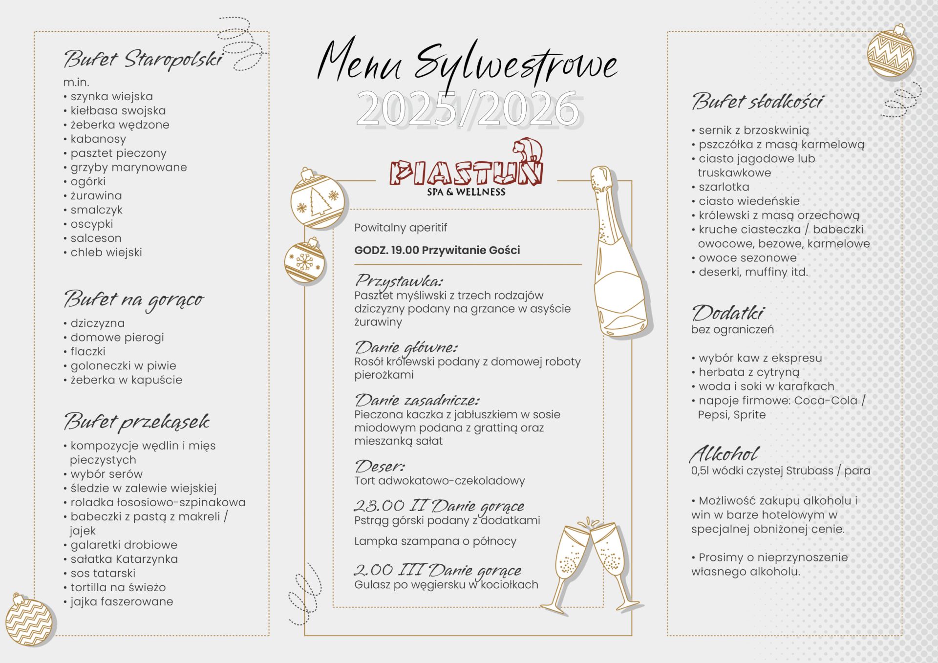 • Bogate, różnorodne menu sylwestrowe z elementami kuchni regionalnej